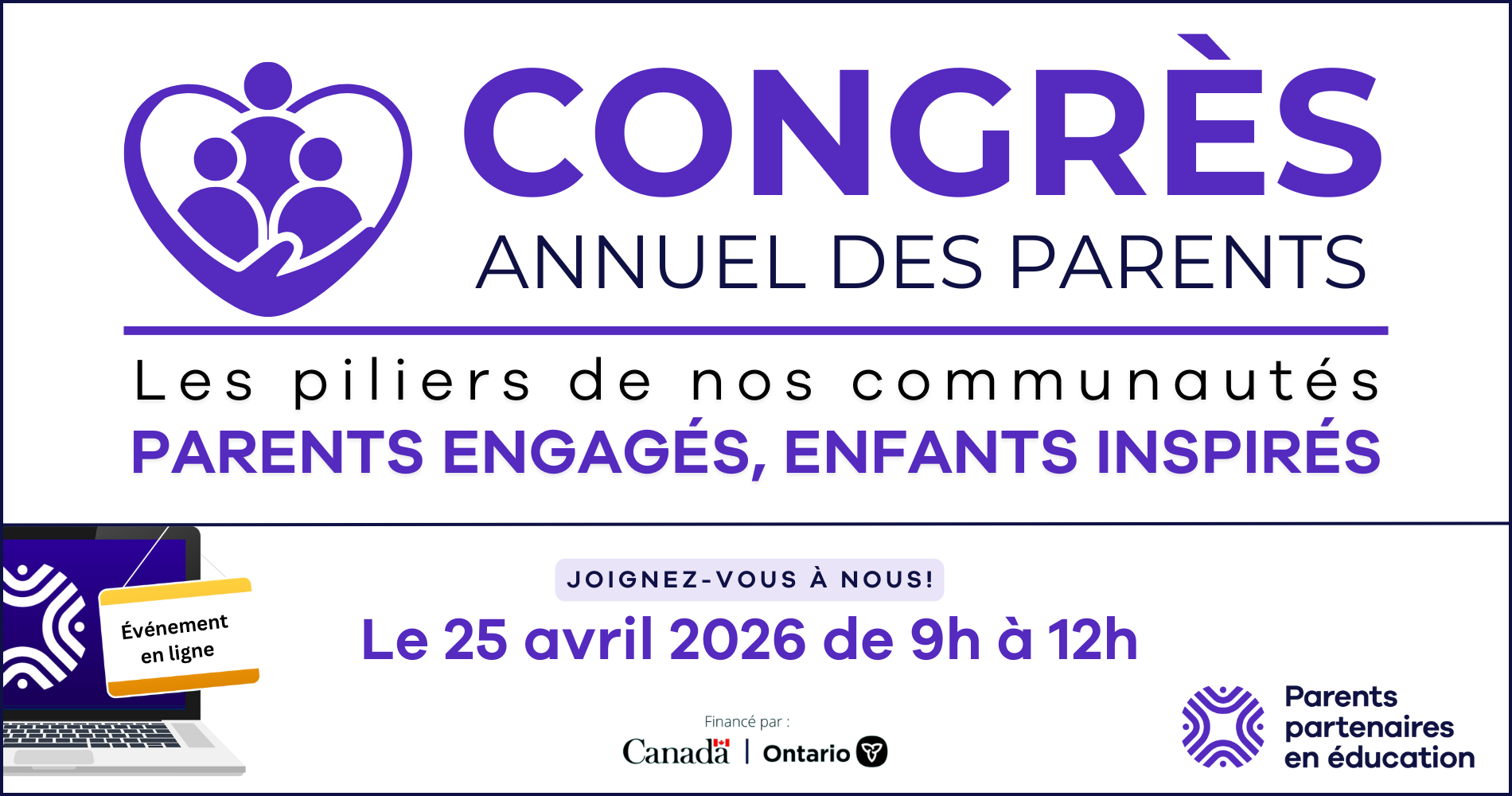 Le congrès annuel des parents, « Les piliers de nos communautés : PARENTS ENGAGÉS, ENFANTS INSPIRÉS », aura lieu le samedi, 25 avril 2026.