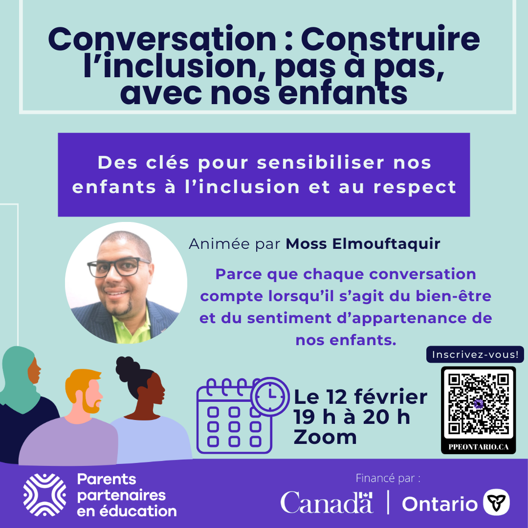 Dans ce contexte, nous vous invitons à prendre part à une soirée-conversation entre parents, animée par Moss Elmouftaquir, parent de deux enfants et Conseiller principal en ressources humaines au gouvernement fédéral.