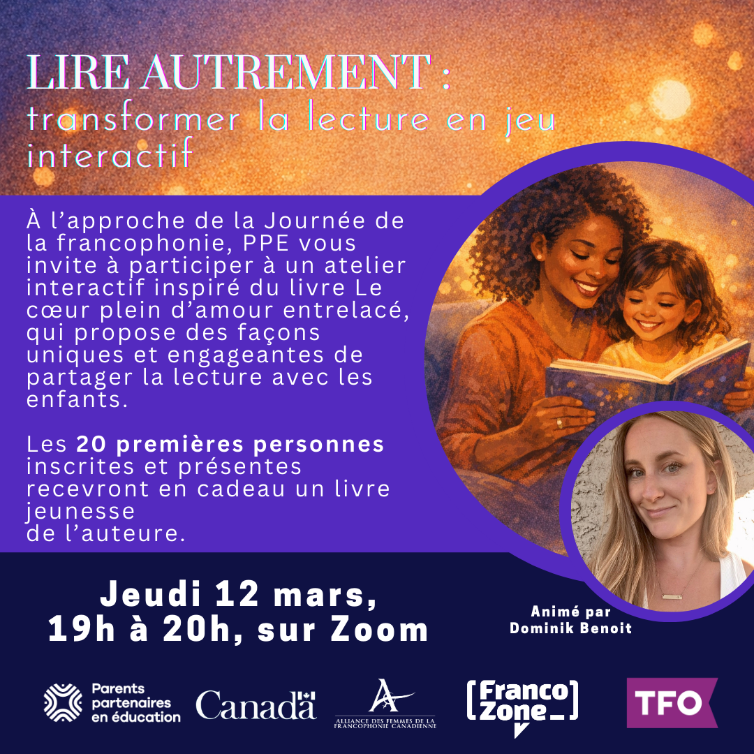 Cet atelier propose d’explorer des façons uniques et engageantes de partager la lecture avec les enfants, tout en mettant en lumière le rôle précieux des parents francophones dans la transmission de la littérature, du sentiment d’appartenance et du plaisir des livres.