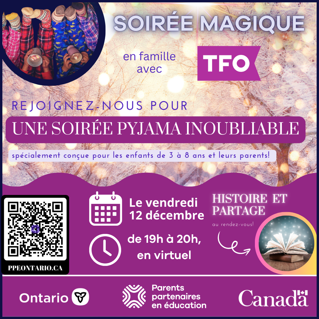 Cette soirée, placée sous le signe de l’émerveillement sera l’occasion idéale de découvrir comment les ressources éducatives de TFO peuvent enrichir le parcours éducatif de vos enfants tout en s’amusant. Au programme : accueil chaleureux, moments de partage et d’interaction qui feront briller les yeux des petits et des grands.